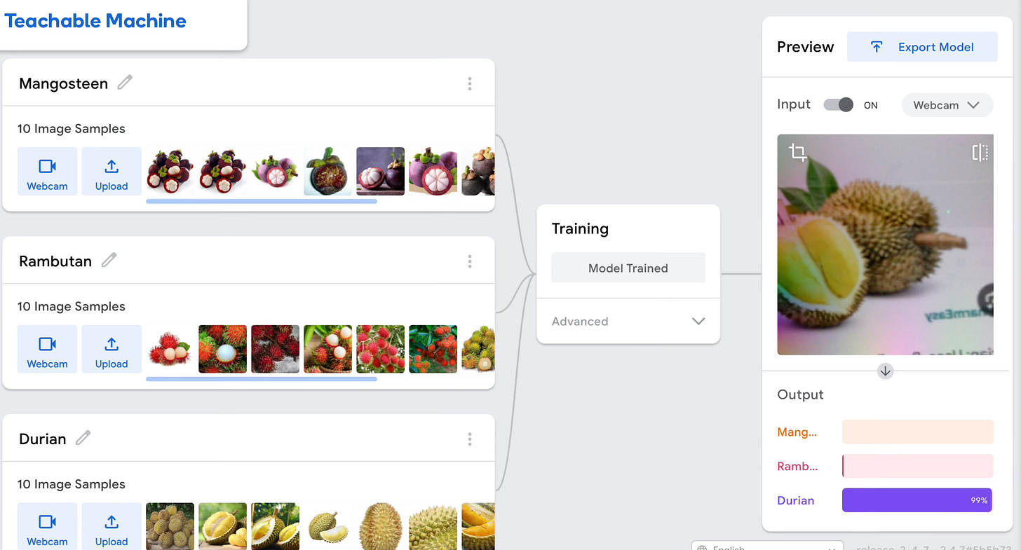 Congratulations! You've just built your first Machine Learning project using Teachable Machine, celebrating the unique fruits of Malaysia. Isn't that exciting?